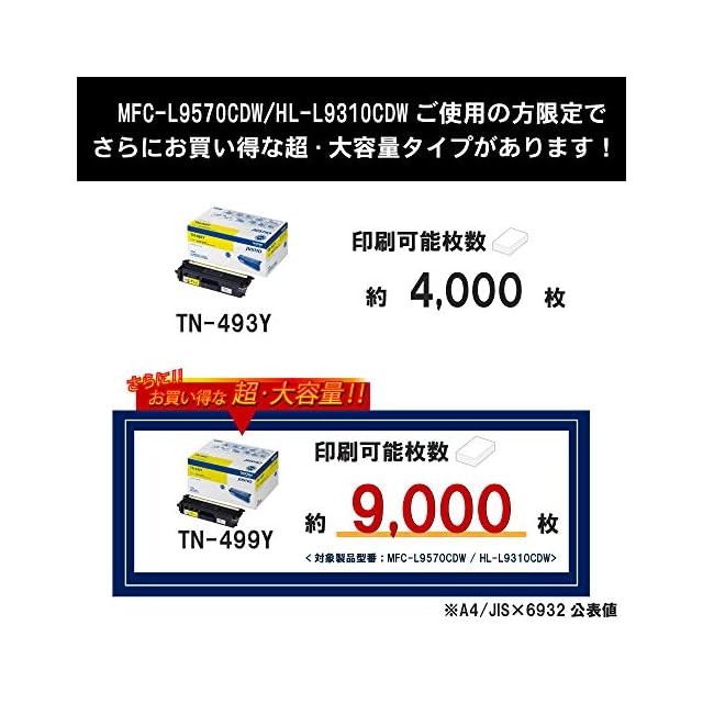ブラザー工業 【brother純正】トナーカートリッジイエロー(大容量) TN-493Y 対応型番:HL-L9310CDW、HL-L8360CDW、MFC-L9570CDW、MFC-L8610CDW 他 | つむぎ屋