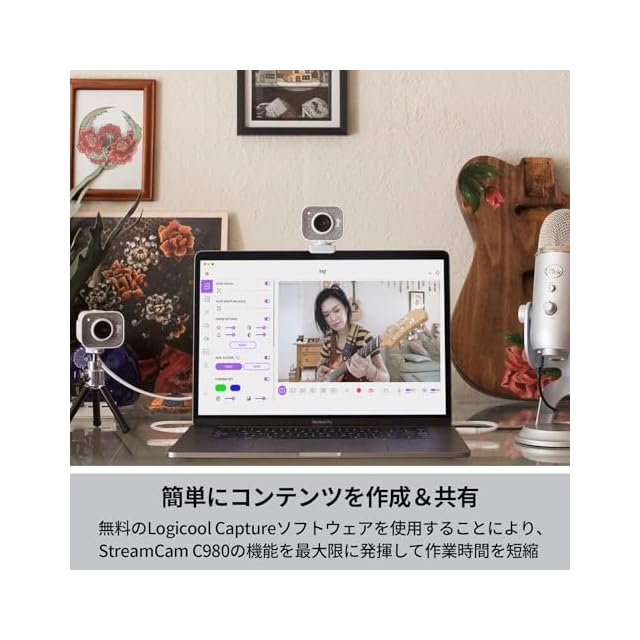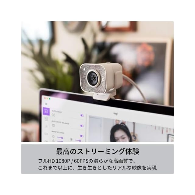 ロジクール Webカメラ C980OW フルHD 1080P 60fps ストリーミング AI オートフォーカス 自動露出補正 手ブレ USB Type-C ウェブカメラ ウェブカム PC Windows Mac スマホ YouTube オフホワイト 国内正規品 | つむぎ屋