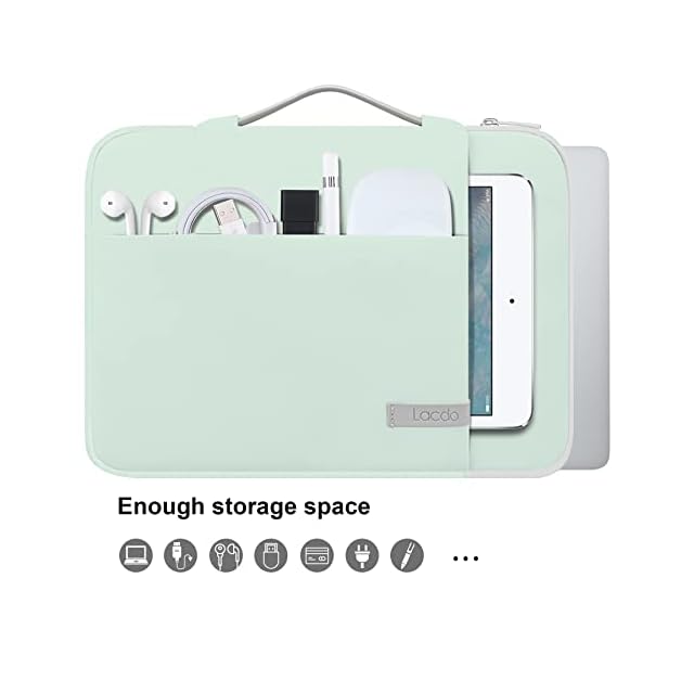 十分な収納スペース: ラップトップ用のメインコンパートメントを除けば、このキャリングスリーブケースバッグはさらに2つのフロントアクセサリーポケットと背面に1つの大きなコンパートメントがあり、小さなiPad、マウス、充電器、電源コード、ケーブル、イヤホン、ペン、ハードドライブ、パワーバンクなどを収納できます: ノートパソコンや電子アクセサリーを素早く取り出せます。Lacdoのプロフェッショナルなラップトップバッグは、あなたのアイテムを安全かつ整然と保ちます、