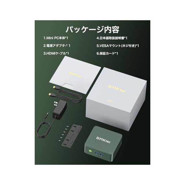 【超小型・省スペース設計・品質・サポート】本体サイズはわずか114×106×42.5mm、重さ361gのコンパクトデザイン。狭いスペースでも設置が容易で、持ち運びにも便利です。省電力設計により消費電力は6Wと、従来のデスクトップPCに比べて電気代を大幅に節約できます。パッケージ内容:G3 Plus本体、電源アダプター、HDMIケーブル、VESAマウントブラケット、取扱説明書。1年間のメーカーに加え、24時間以内のカスタマーサポートを提供。
