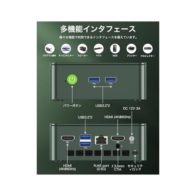 【静音設計】静音ファンが安定した冷却を実現し、静かな環境で快適に作業を進められます。長時間の使用でも安心してお使いいただけます。【大容量ストレージ&4TB拡張性】Twin Lake N150 mini pc 8GB DDR4メモリ(16GBまで拡張可能)と256GB M.2 NVMe SSDを標準搭載。M.2 2280 PCIe スロットは最大4TBまで拡張可能です。ビデオ、画像、ファイルなどの大量データ保存に適しています。
