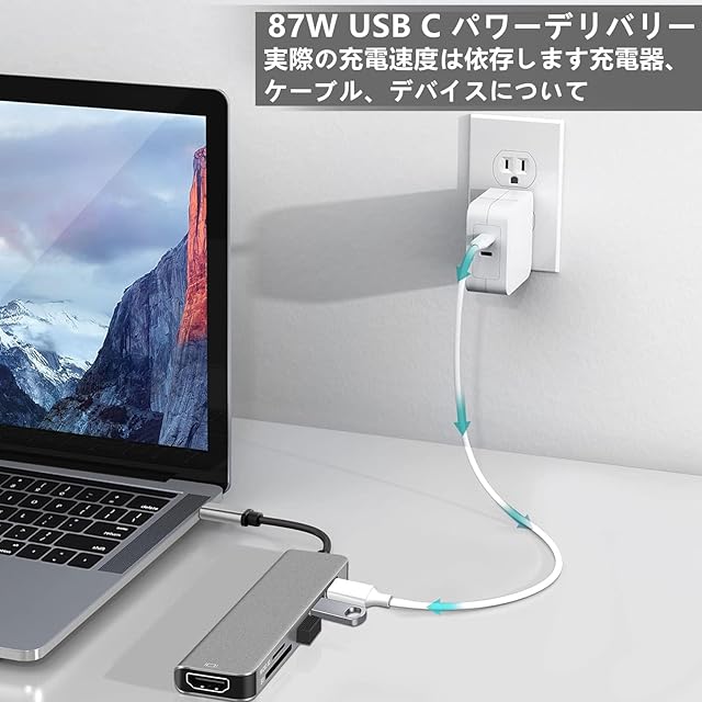 『6-in-1 typec ハブ』:HDMI(4K 30Hz)ポート*1+USB3.0/USB2.0ポート*1+急速 PD充電ポート(最大100Wまで急速充電)*1+SD&TF カードスロット(最大速度480mbps)*1が搭載されています;使用簡単。