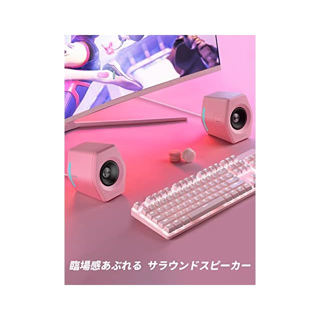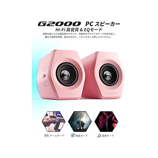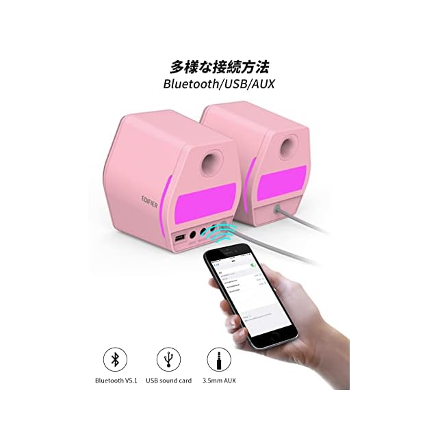 Edifier G2000 ゲーミング スピーカー PC パソコン PS5 Switch ゲームモニター用 Bluetooth/USB/3.5mm AUX 有線無線接続対応/ゲーム、音楽、映画モード対応/32W Hi-Fi音質【SUB-OUT端子/rgb】小型 ピンク | つむぎ屋