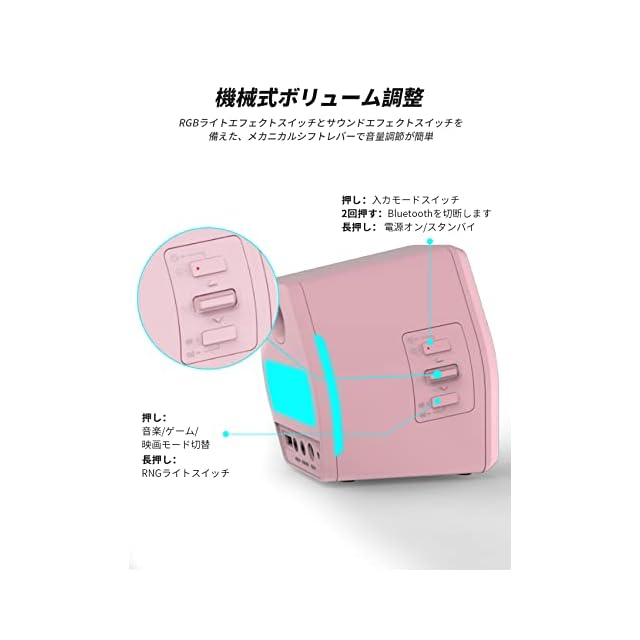 【フルカラーRGBライト】当社のゲーミングスピーカーには、12色を自由に切り替えられる美しいRGBライトが搭載されています.暗いところではさらにカッコよく見えます.より魅力的なゲーム/音楽/映画の雰囲気をお楽しみます。
