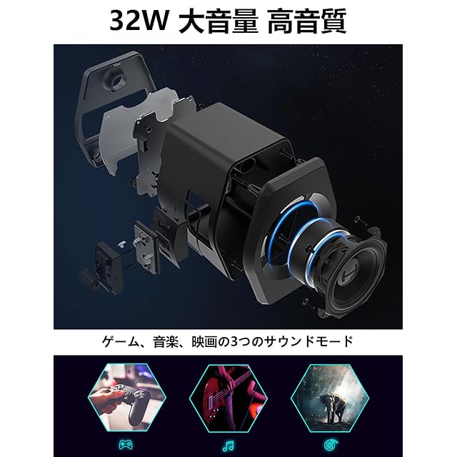 【Hi-Fi高音質&EQモードゲーミングスピーカー】プロフェッショナルな設計により、クリアな高音、詳細な中音、豊かな低音で、音楽用の最高のオーデイオ性能を提供します.プロ仕様のオーディオチップセットを内蔵し、ゲーム、映画、音楽用のEQサウンドモードが可能です。