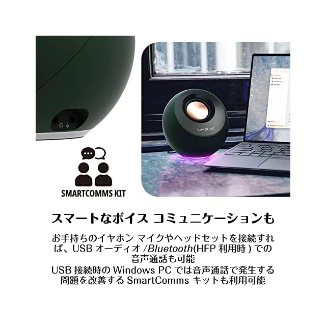 Windows PCでPebble ProのUSBオーディオを介してボイス コミュニケーションを行う際は、ビデオ会議やボイス チャットでの音声通話で発生する問題を改善し、オンライン コミュニケーションをより便利に、そして快適に行えるCreative アプリのSmartComms キットの便利な機能 ‐ 発言する時だけマイクが有効に、発言しない時はマイクが無効となるVoiceDetect機能、自分側の背景ノイズ音のみならず、通話相手側の背景ノイズ音をも低減して声を聴きやすくするNoiseClean機能 ‐ が利用可能
