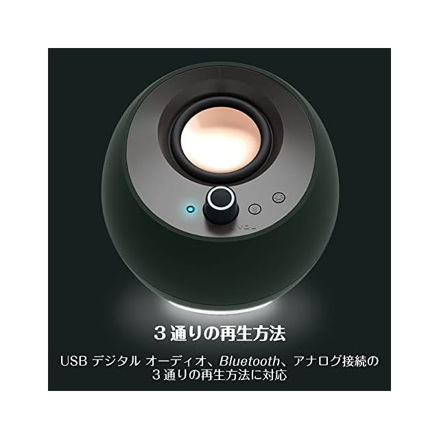 【USB接続・Bluetooth接続・3.5mmプラグケーブル対応モデル】Creative Pebble Proは3種類の音声入力に対応。右スピーカー正面にあるBluetooth/ソースボタンを繰り返して押すことで入力を切り替えます。(今の入力状態はLEDでお知らせします:USBモードは紫色/Auxモードは緑色/Bluetoothは青色で点滅)PCやMacで劣化のないUSBデジタル オーディオを再生したり、Bluetoothワイヤレス接続では、スマートフォンで再生する音楽のワイヤレス オーディオ再生も可能。アナログ接続では携帯ゲーム機やテレビなどのアナログ出力のオーディオも簡単に再生可能【CREATIVE製品は技適マーク取得後販売しています】