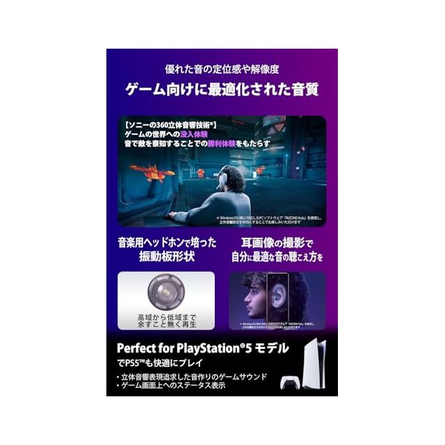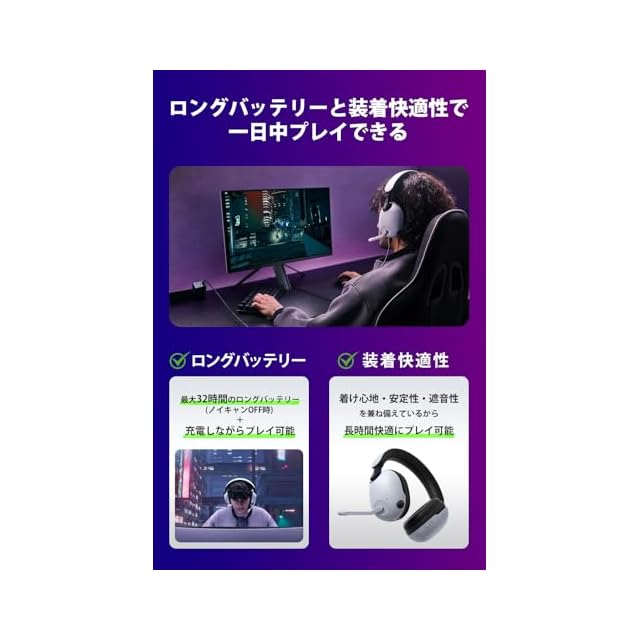 すべての音に、耳を澄ませ ノイズキャンセリング機能搭載 ソニーのイヤフォン1000Xシリーズで実績のあるデュアルノイズセンサーテクノロジーによる ノイズキャンセリング機能とアンビエントサウンドモード(外音取り込み)を搭載 外音遮断することによりゲームへの没入感を高める