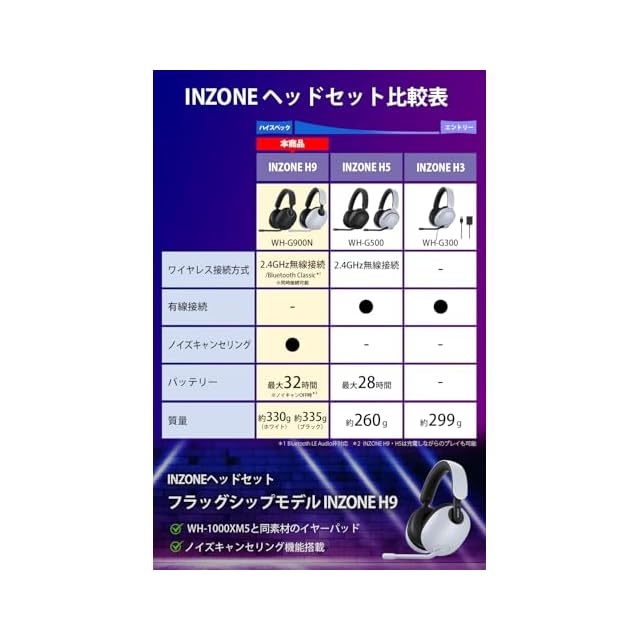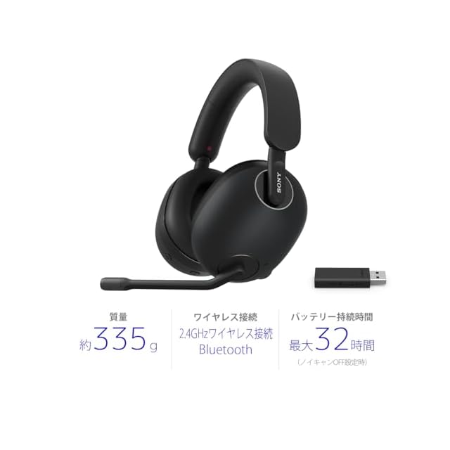 ソニー ゲーミングヘッドセット INZONE H9: WH-G900N: ワイヤレス / Bluetooth / ノイキャン搭載 / 立体音響 / 低遅延 / 長時間使用しても疲れづらい / ブームマイク付き / Perfect for PlayStation5 PS5 ブラック | つむぎ屋