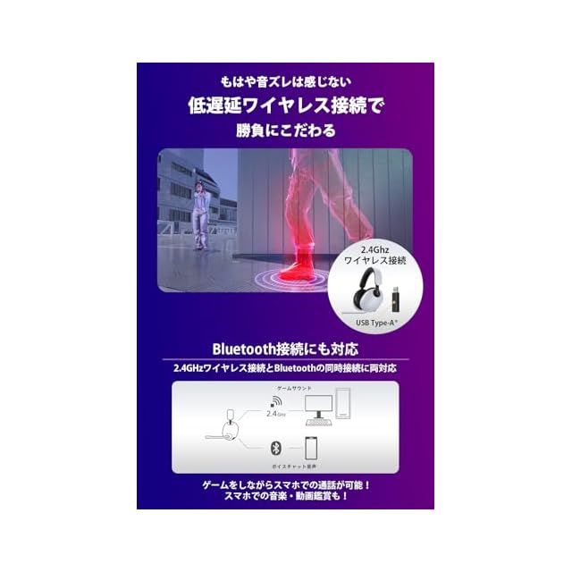 低遅延を実現する2.4GHワイレス接続 ワイレスながら低遅延を実現。 快適性と勝利への貢献度を両立