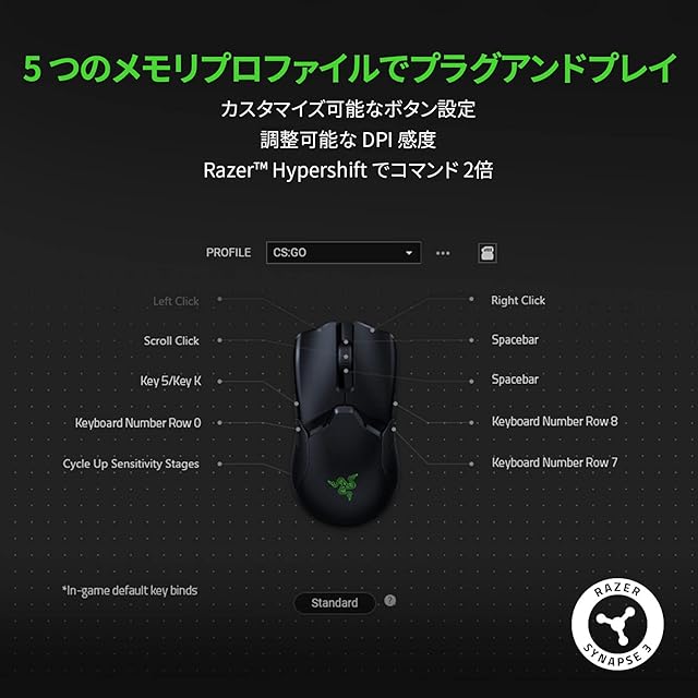 【プロと共に作った、プロに信頼されるマウス】eスポーツの進化と共に、マウスの設計に対する Razer の考え方も進化しています。Razerではプロの最新の好みに対応するために最善を尽くし、前モデルのViperで学んだことを、機能性と快適さを備えた新しい形状に取り入れました。