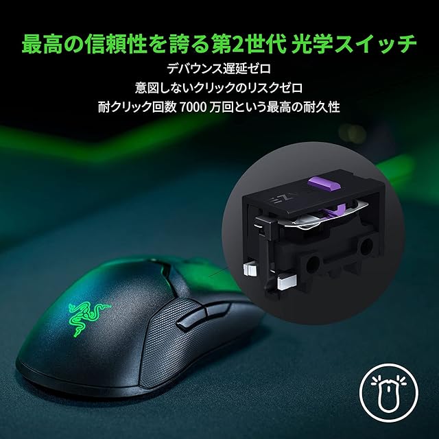 【第3世代Razerオプティカルマウススイッチ】デバウンス遅延のない0.2msの高速動作、チャタリングを起こさない9,000万回のクリック寿命など、eスポーツのため信頼性とスピードを持っています。