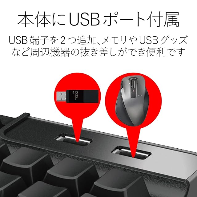 USB2.0ハイスピードモード対応のUSBポートを2ポート搭載しています。マウス、USBメモリなどのUSB機器を接続可能です。