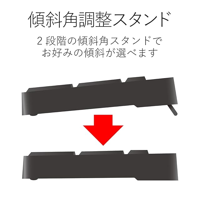 傾斜角を2段階で調整できる傾斜角度調節スタンドが付いています。