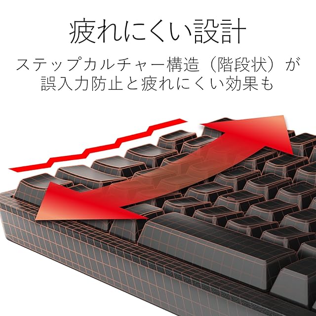 各段を階段状に配置し、各キーの上部が指の動きに合わせて湾曲した「ステップスカルプチャー構造」と、各キーの上部が窪んだ「シリンドリカル構造」により、誤入力や無駄な指の動きをなくし、快適な打鍵を実現するEXTRA TOUCHシリーズです。
