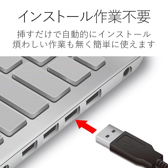 専用ドライバなどのインストールは不要で、パソコンのUSBポートにコネクタを接続するだけですぐに使用可能です。
