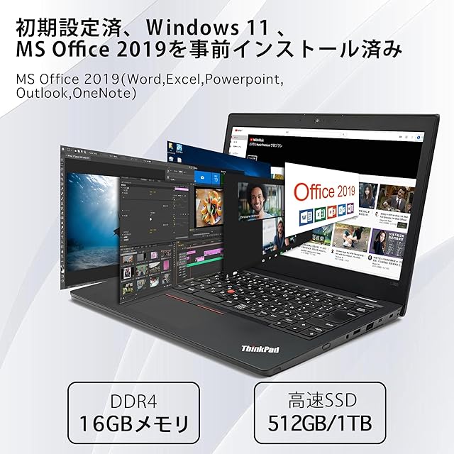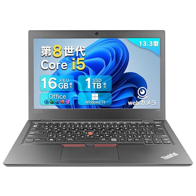 【整備済み品】 ノートパソコン レノボ 軽量薄型 ThinkPad L380 Win11pro搭載 Office2019搭載 / HD/高性能 八世代Core i5-8250u(最大3.4GHz)/16GB1TB/Webカメラ搭載 無線マウス付き/13.3インチ