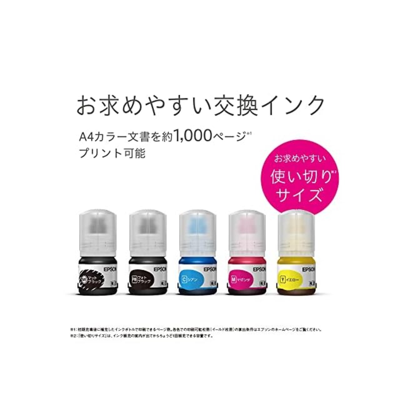お求めやすいインクボトルで低印刷コスト お求めやすい使い切りサイズのインクボトルでA4カラー文書を約1,000ページプリント可能(注3)。さらに、A4カラー文書が約3.0円(税込)(注1)(注2)という低印刷コストなのでインク代を気にせずプリントを楽しめます。