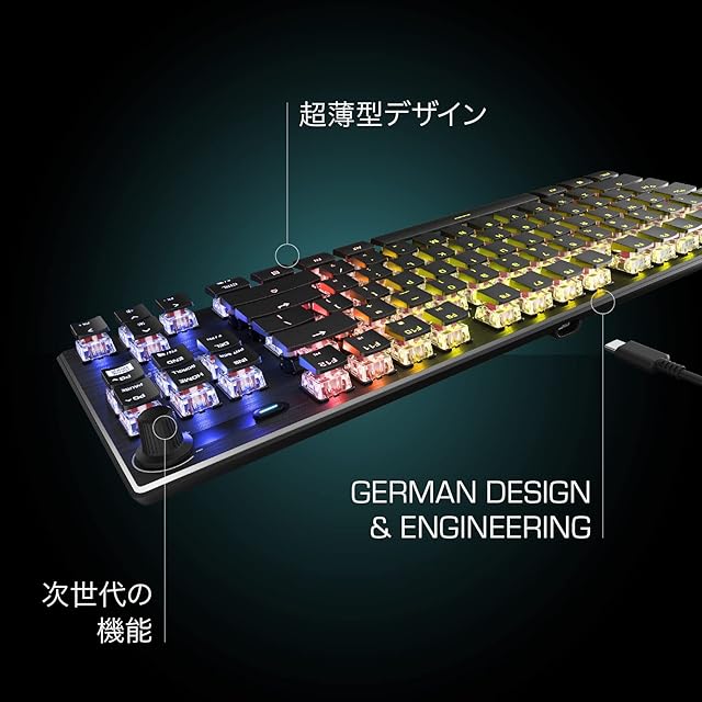 ROCCAT VULCAN TKL USB-C ゲーミングキーボード 英語配列 静音 リニア(赤軸相当) テンキーレス USパッケージ【日本正規代理店品】