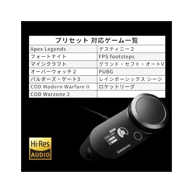【SteelSeriesヘッドセットに最適化されたサウンド設定】GameDAC Gen2 本体のプリセットはSteelSeries製ヘッドセットを用いて作成されました。レンジが広く、くせのないフラットなサウンドのSteelSeriesのヘッドセットをご使用いただく事で、より最適なサウンド設定を体感いただけます。