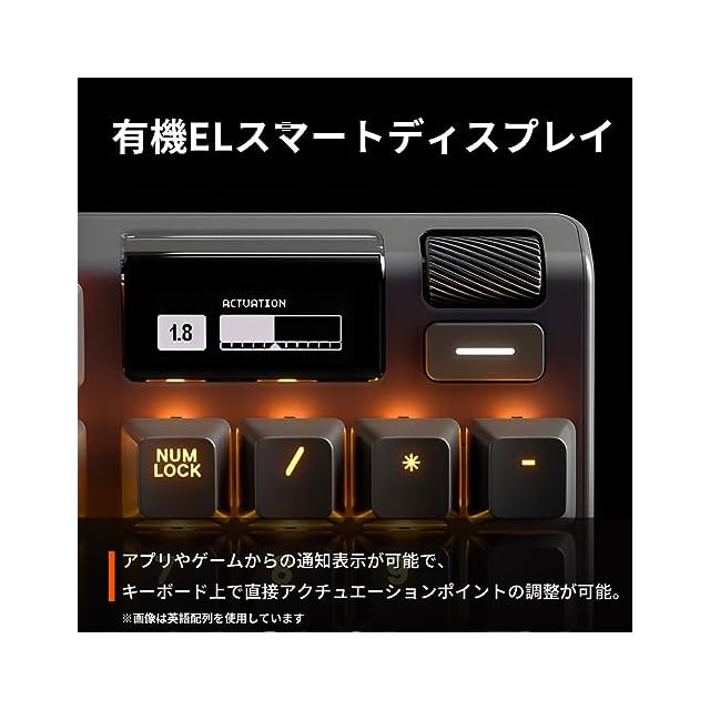 【有機ELスマートディスプレイ】アプリやゲームからの通知表示が可能で、キーボード上で直接アクチュエーションポイントの調整が可能。