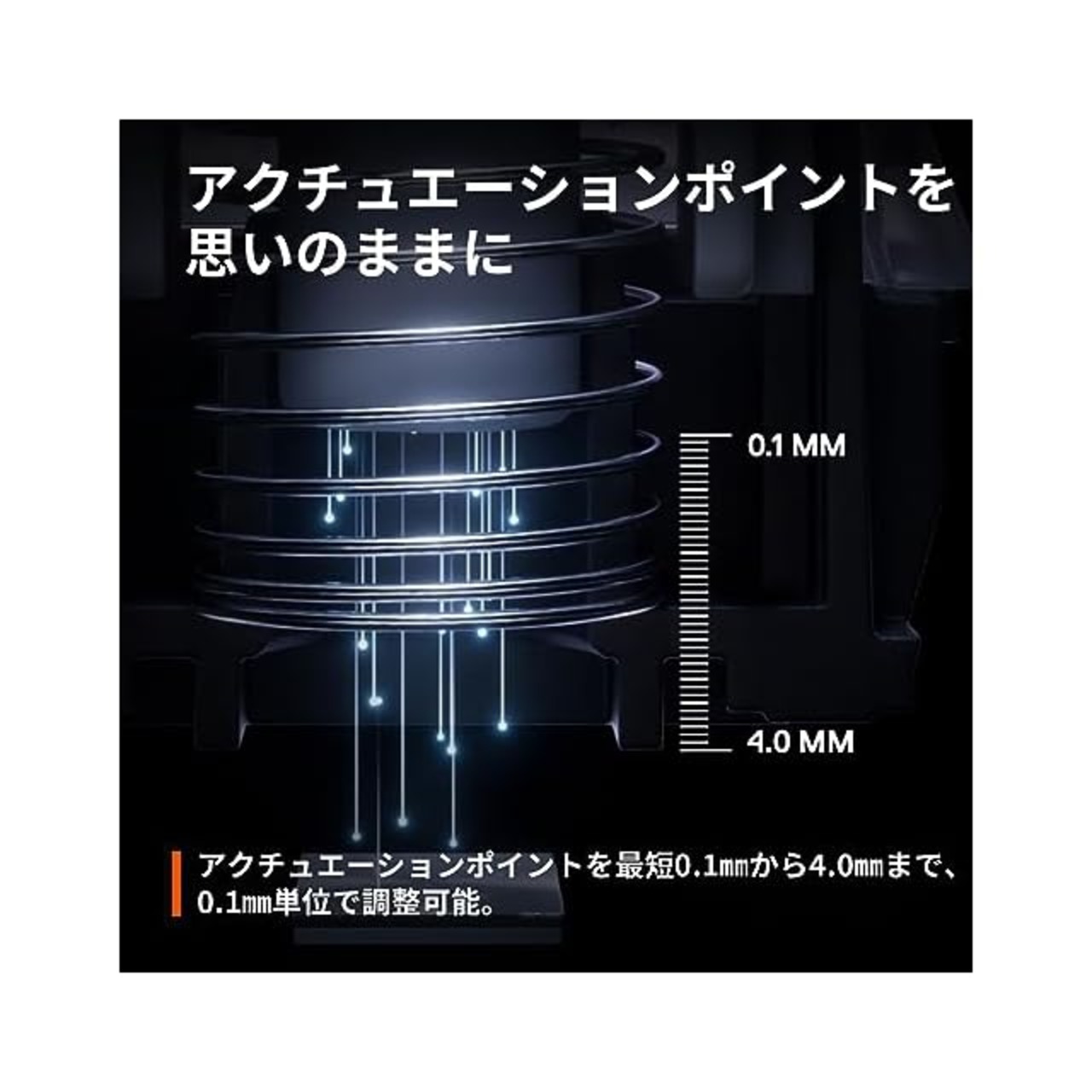 【新機能Rapid Tap、人気のRapido Trigger搭載】:キャラクターをより素早くコントロールできる新機能Raid Tapを搭載。また、キーのキャンセルを好みの位置でキー毎に設定可能な人気のRapid Triggerにも対応しています。