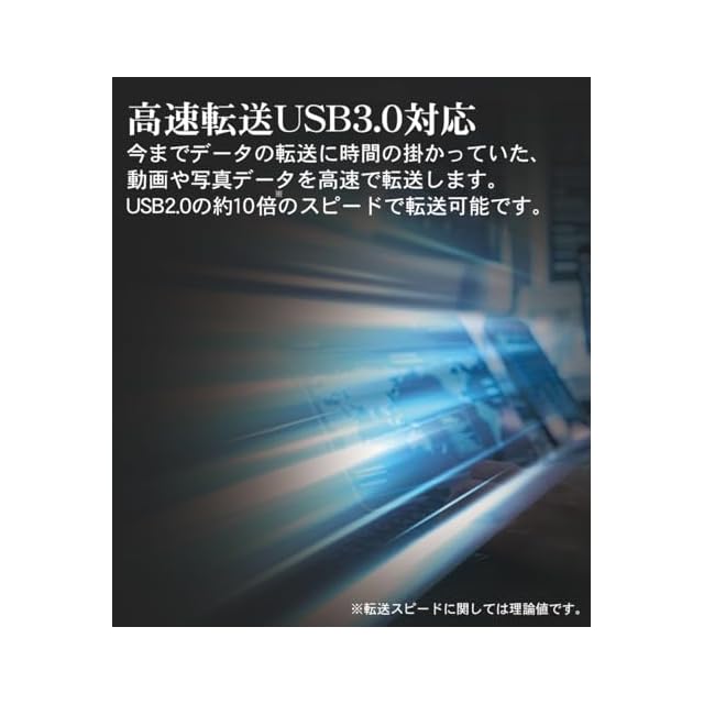 【高速転送】USB3.1(GEN1)により写真、動画など大きいデータをサクサク転送できます。もちろん、USB2.0でもご使用いただけます。