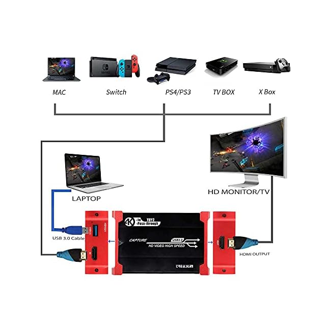 【4K遅延のないHDMIパススルー】hdmiパススルーポートを使用するときにレイテンシはありません。hdmiパススルーポートは、ライブ放送の際に非常に便利です。