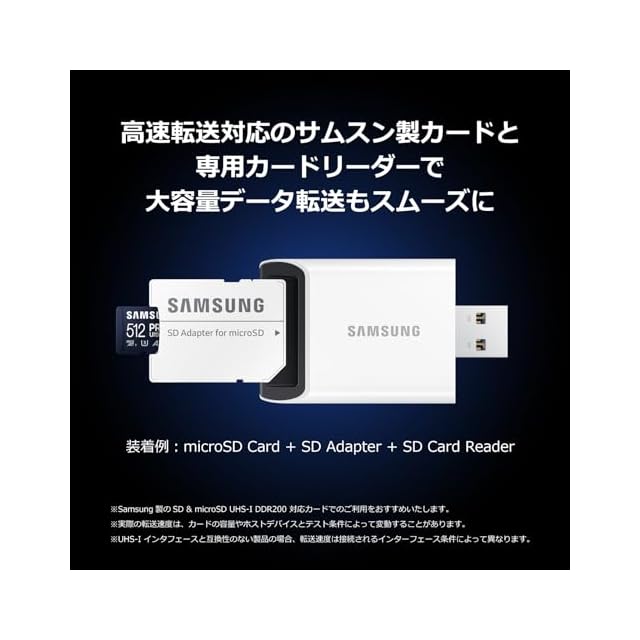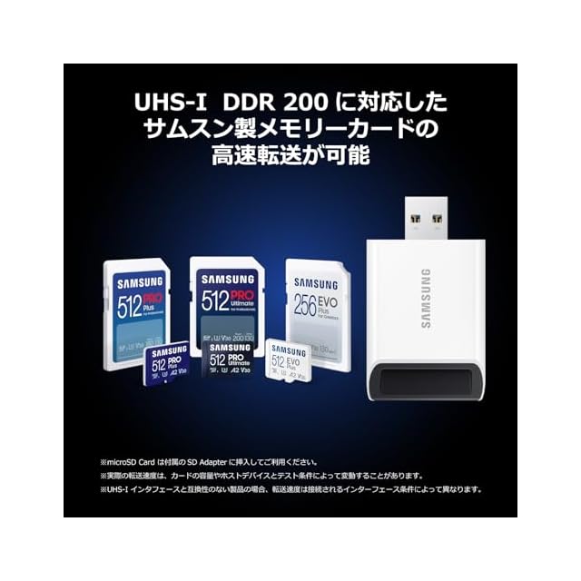 対応カード:Samsung microSD PRO Ultimate、PRO Plus、EVO Plus/Samsung SD PRO Plus、EVO Plus