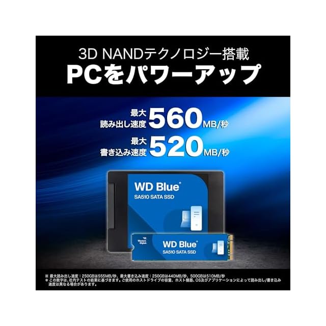 WD Blue SA510 SATA SSDは互換性を高めるために2.5インチおよびM.2フォームファクターで提供されており、旧型のマシンのスロットを含む、多数のPCスロットで使用できます。