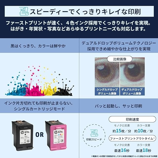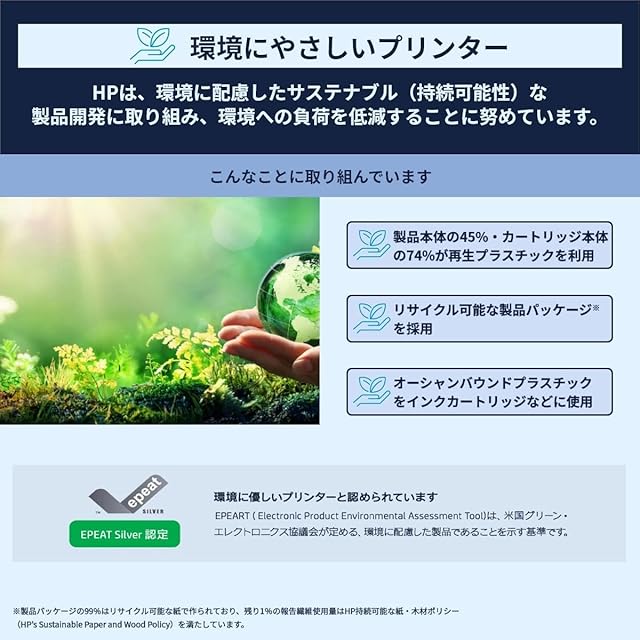 環境にやさしい、サステナブルなプリンター:製品本体の45%・カートリッジ本体の74%が再生プラスチックを利用。EPEAT Silver 認定 【対応インク】HP804・804XL(黒、カラー)