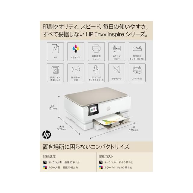 HP プリンター HP ENVY Inspire 7220 2022年モデル インクジェット複合機 スマートフォン連携 スキャン 無線LAN 自動両面印刷 タッチスクリーン付 テレワーク サンドベージュ(型番:242P9D0#ABJ) | つむぎ屋