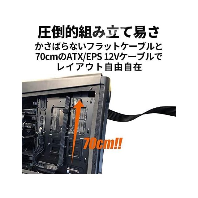 ケーブルマネジメント / フルプラグイン、フラットケーブルを採用することで、組み立てを容易に。必要な配線のみを接続、配線時にかさばらない、曲げやすいことで裏配線にも対応