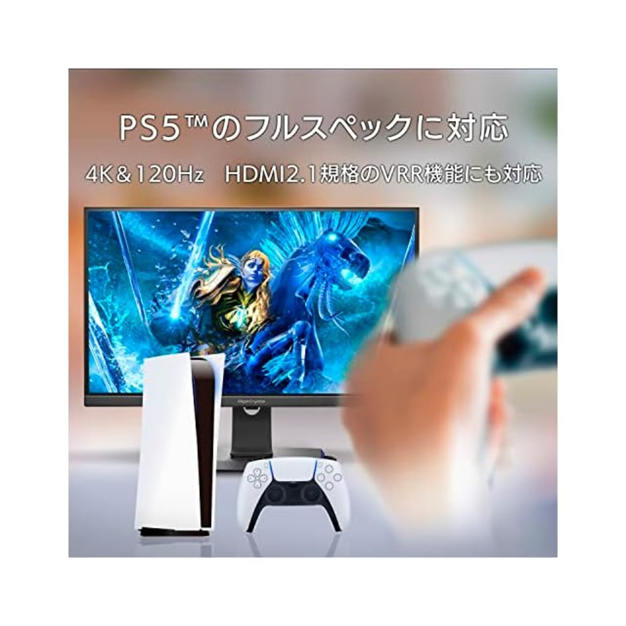 【PS5のフルスペック(4K&120Hz)に対応!】HDMI2.1規格のVRR機能にも対応! 本商品を使用すれば、PS5のスペックを余すことなくお楽しみいただけます。HDMIを2ポート搭載しており、すべて4K120Hzに対応しています。また、HDMI2.1規格のVRR機能に対応。ゲームプレイ中のフレームレートの変化に合わせ、モニターのリフレッシュレートを同期させることで、スムーズでティアリング(画像のずれ)のない快適な映像でゲームを楽しむことができます。