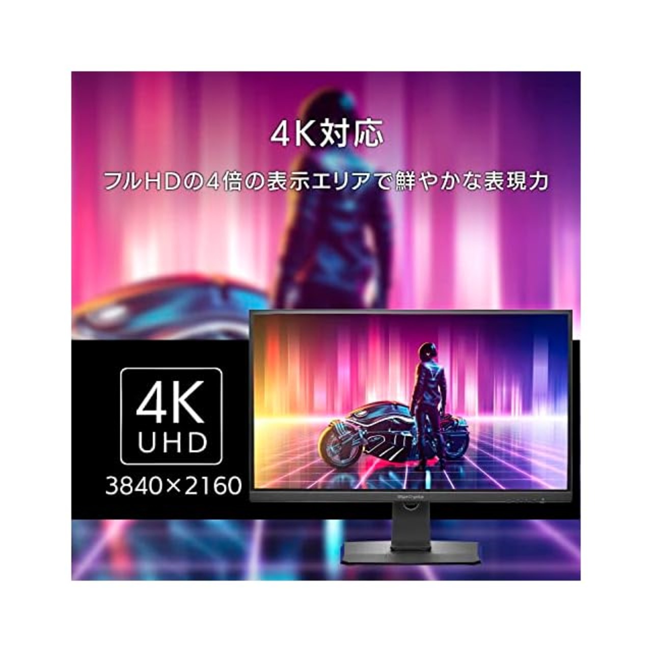 【4K対応でフルHDの4倍の表示エリアで鮮やかな表現力】フルHDの4倍の表示エリアの4K UHD(3840×2160ピクセル)に対応!映像の細部までをよりリアルに鮮明に表示できます。4倍の情報を表示できるので、ゲームやデザイン、ビジネスシーンでより多くの情報を一度に表示し、快適な作業を行うことができます。