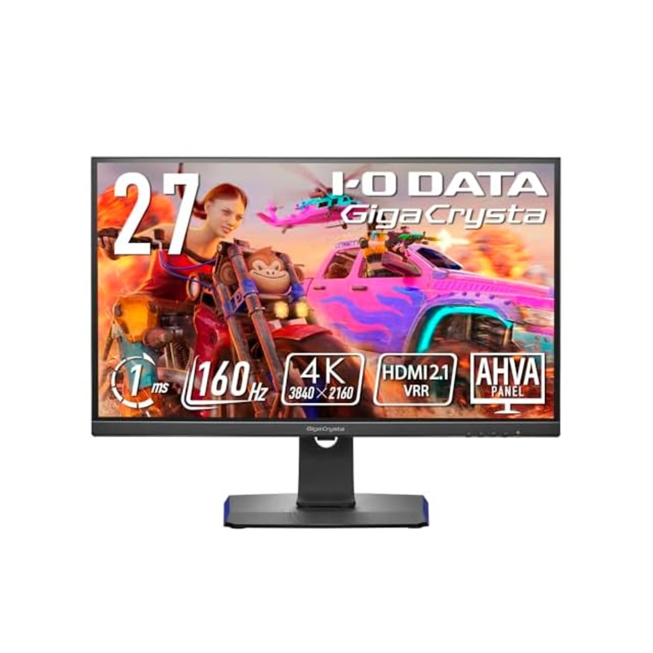 アイ・オー・データ IODATA ゲーミングモニター 27インチ GigaCrysta 160Hz 1ms AHVAパネル (HDMI2.1/4K/PS5/HDMI×2/DisplayPort×1/USB-C×1/高さ調整/縦横回転/スピーカー付/リモコン付/) EX-GCU271HXAB