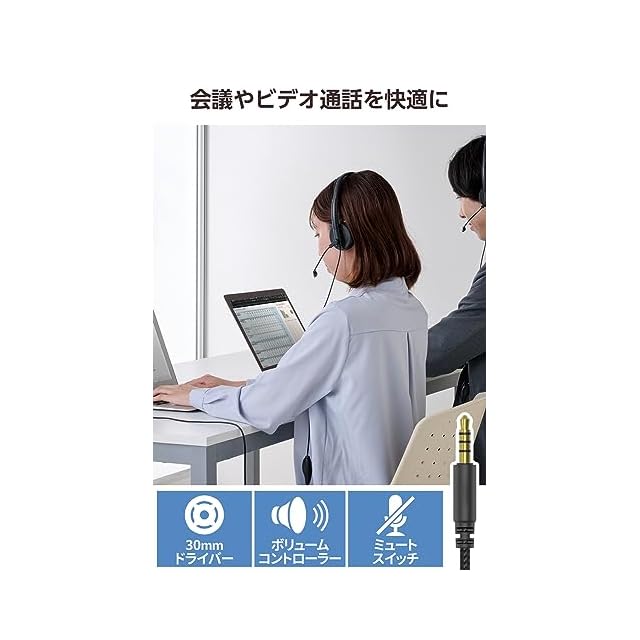 Web会議やビデオ通話、オンラインゲームでの音声チャットに。マイク正面の音を集音しやすく、周囲の環境音を軽減しやすい単一指向性マイクによるノイズキャンセリング性能で、自分の声を通話相手にクリアに届けることができます。30mmドライバーを採用した高音質モデルのオーバーヘッド型有線ヘッドセット(両耳)です。