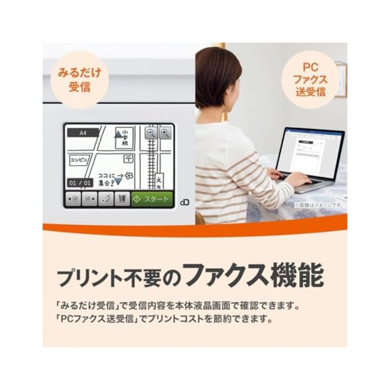機能・仕様:プリント/コピー/スキャン/ファクス対応、タッチパネル液晶:2.7型、前面給紙(1段)、手差しトレイ(1枚)、ADF(自動原稿送り装置):最大20枚、自動両面プリント対応、大きさ:W435×D343×H180mm(突起部を除く)、質量:約8.8kg(インクカートリッジ含む)、インク色数:4色独立、用紙トレイ:最大150枚/排紙トレイ:最大100枚(普通紙:用紙厚さ0.08mm~0.15mm)、印刷対応用紙サイズ:L判~A4