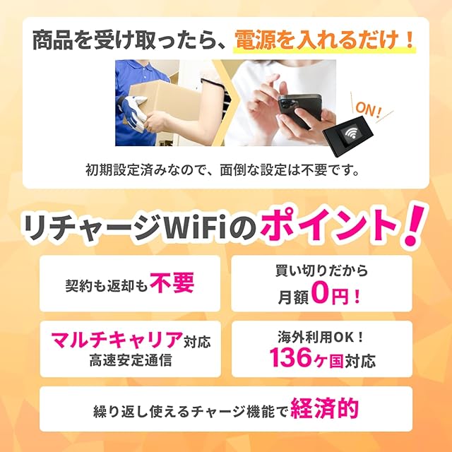【日本国内・海外 双方で利用可能】海外プランは、136カ国に対応!利用したい国のギガチャージプランを購入するだけでOK!ルーター本体は、そのままでご利用できます! 日本でも海外でもこれ1台でリチャージWiFiがご利用できるようになります。