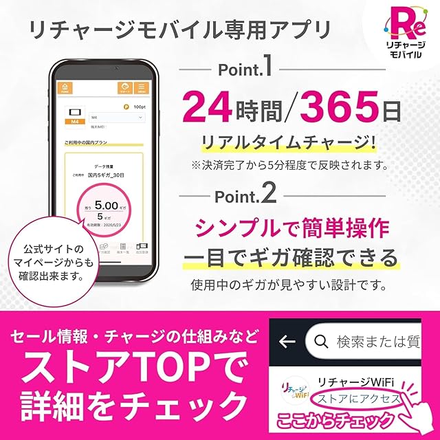 【使う分だけお得にチャージ】24時間/365日 決済が完了したらすぐにチャージ反映!ギガは、何時でもおかわりできるのでギガを使い切っても追加ギガチャージで何度でも使えます。