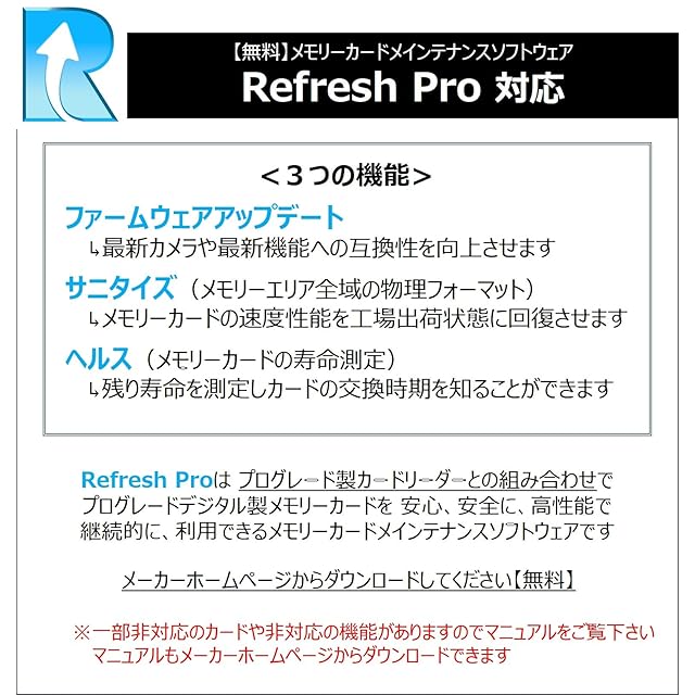 ✅ファームウェアアップデート、カード寿命確認、ディープリフレッシュにより書込速度の回復が簡単にできる「Refresh Pro(無償)」対応