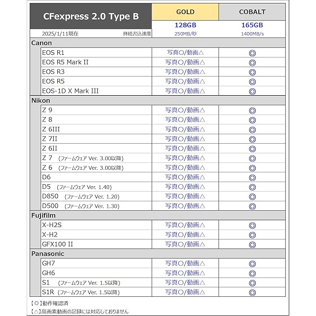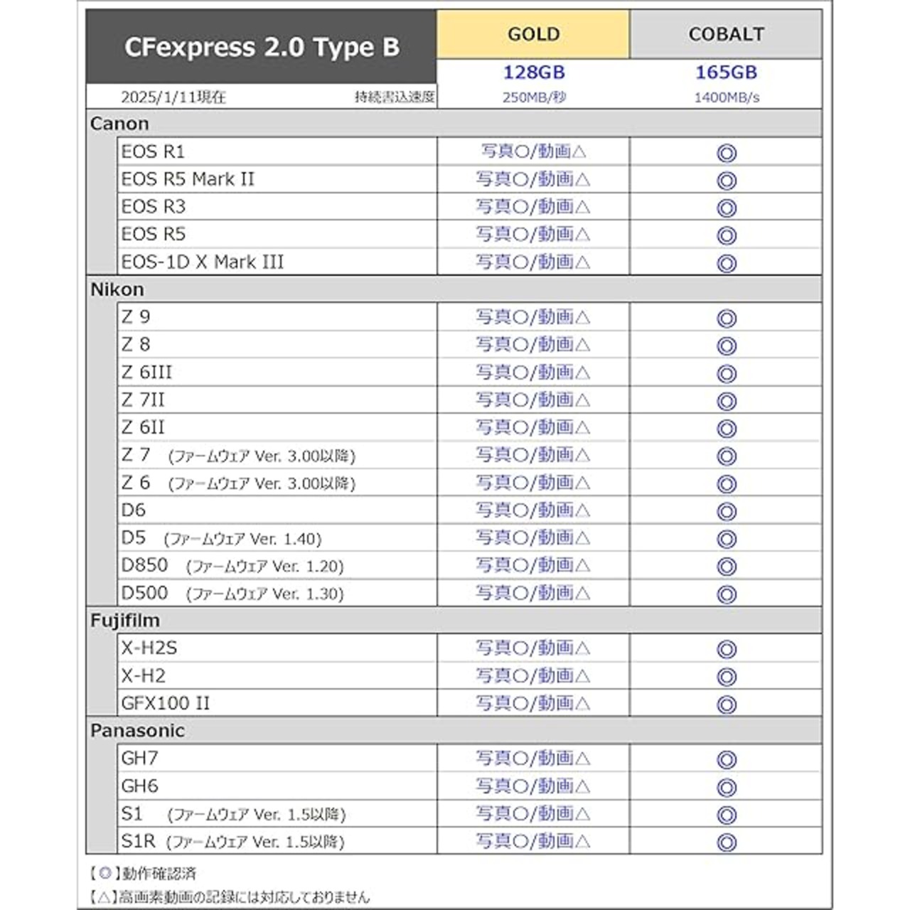 ✅CFexpress 2.0への下位互換性あり:もちろんCFexpress 2.0対応カメラやカードリーダーでも使用でき、従来のCFexpress 2.0 GOLDカードと同等の性能を発揮