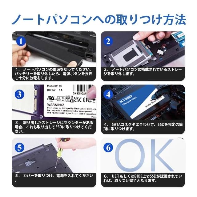 内蔵型SSD 128GB 2.5インチ 7mm 3D NAND採用 SATAIII 6Gb/s 550MB/s KYSSD K100-SSD-128GB 国内5年 (SSD, 128GB)