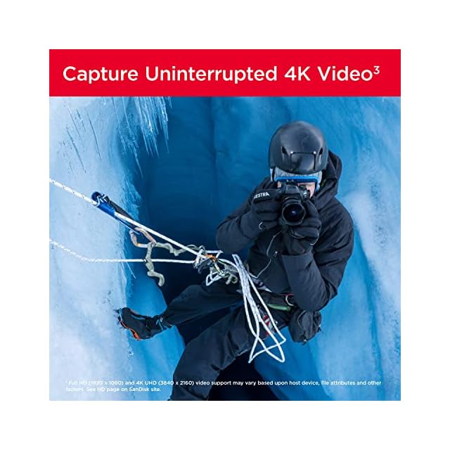 4K UHD動画とシーケンシャルバーストモードの写真の撮影に最適(フルHD (1920x1080) および4K UHD (3840x2160) 動画のサポートは、ホストデバイス、ファイル属性、その他の要因によって異なる場合があります。 SanDiskウェブサイトのHDページをご覧ください。)