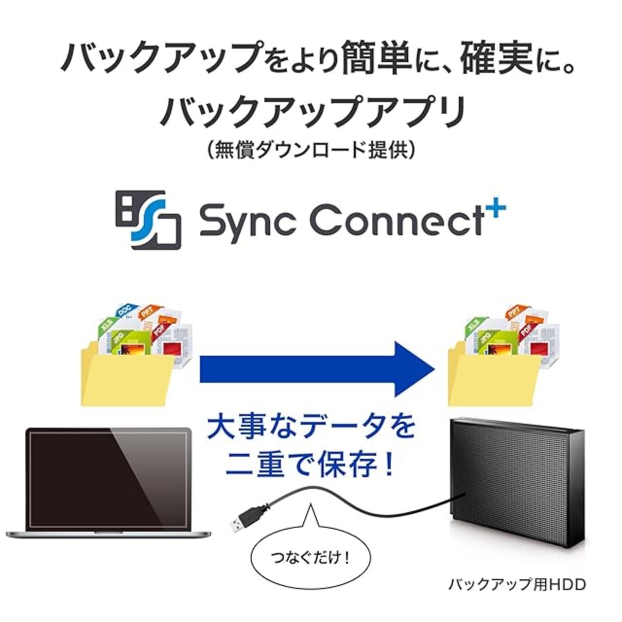【バックアップをより簡単に、確実に。バックアップアプリ「Sync Connect+」(無償ダウンロード提供)】バックアップ」とは、思いがけないパソコンの故障やデータの削除に備えて、二重にデータを保存しておくことです。データの保存には様々な方法がありますが、一度「Sync Connect+」を設定してしまえば、その後のデータのバックアップはすべて「Sync Connect+」が自動で行いますので、日々の面倒なバックアップ作業は不要です。