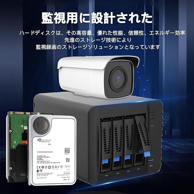 【監視システム対応・長時間録画】 高耐久設計により、防犯カメラやNVR(ネットワークビデオレコーダー) などの監視システムで長時間連続録画に対応。安定したデータ保存を実現。