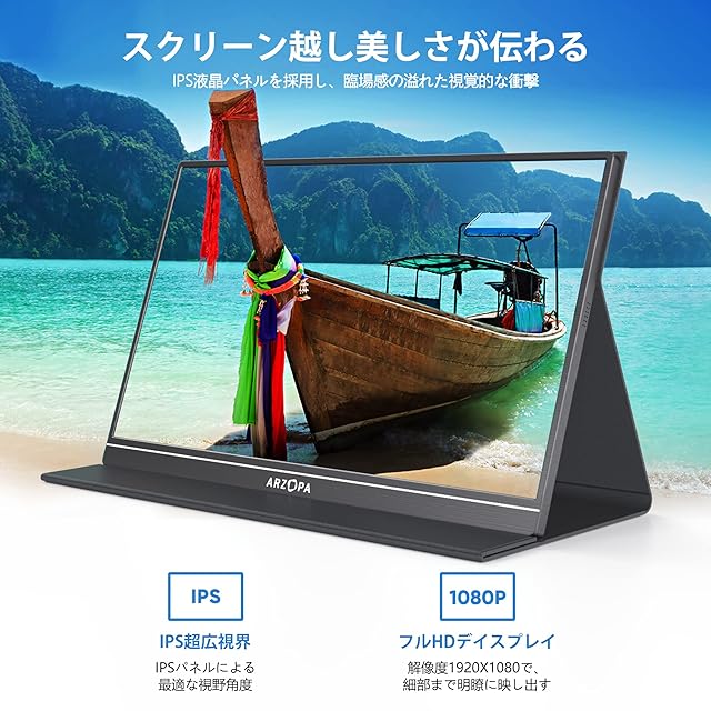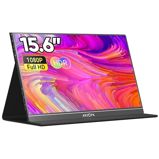 ARZOPA 15.6インチ モバイルディスプレイ 薄型軽量 非光沢IPSパネル 1920x1080FHD HDR対応 USB C/mini HDMI スピーカー内蔵 スマホ/PC/Mac/スイッチ等接続可能 スタンドカバー付き 在宅勤務用 S1 Table | つむぎ屋