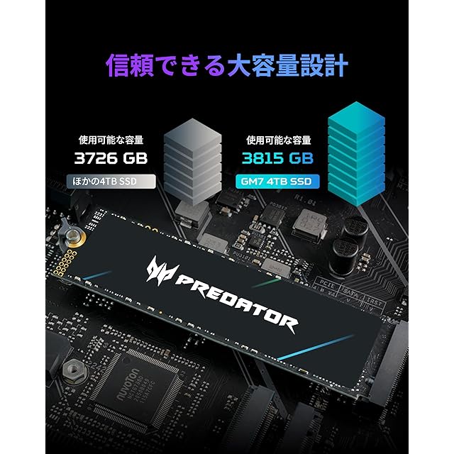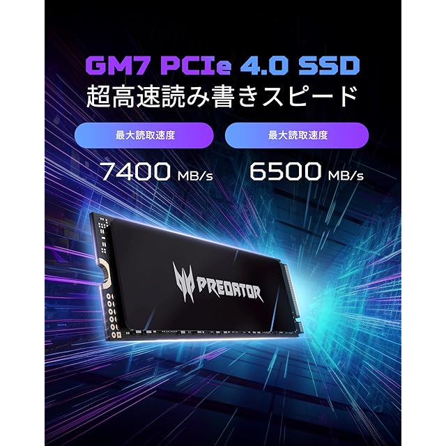 Acer Predator M.2 SSD 1TB GM7 NVMe2.0 2280 PCIe Gen4×4 超高速(最大読み取り:7400MB/s、最大書き込み:6500MB/s) 内蔵SSD 高耐久 3D NAND TLC PS5/PS5 Pro動作確認済み メーカー5年