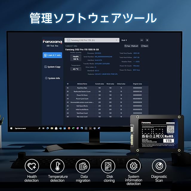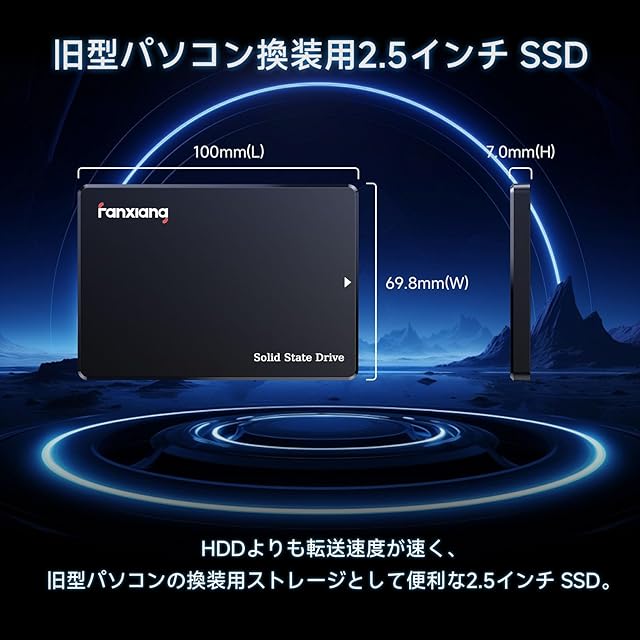 【幅広い互換性 SSD 】インターフェース:SATA Ⅲ 6GB/S。容量はそれぞれ256GB/512GB/1TB/2TB/4TBより選択可能で、ユーザーの用途に応じてストレージ容量をお得に拡張することができます。 fanxiang SATA SSD は、ノートパソコン、デスクトップコンピューター、オールインワンPC および 自宅サーバーで使用でき、Windows/Linux/Unix/Mac OS およびその他のシステムと互換性が高いです。SATA3.0 6Gb/s、3Gb/s、1.5Gb/s (互換性あり)。