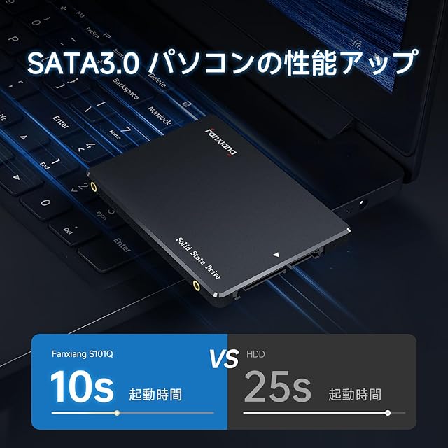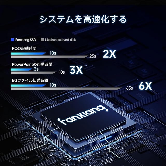 【3D NAND の効率性が真価を発揮】最初から最後まで効率を念頭に設計された最先端のコンポーネント、3D NAND。その3D NANDを採用したfanxiang SATA SSD は、電力消費を最小限に抑えつつ、高コストパフォーマンスを実現しており、支払いに頭を悩ます必要はありません。発熱量が小さく、高速で静かなコンピューター環境を自宅やオフィスで体験してみてください。今までハードドライブに我慢していたことが不思議になるほどです。